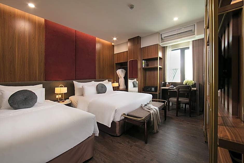 Indulge in a spacious Deluxe Double or Twin Room with stunning views, accommodating 2 adults and 1 child. Enjoy the comfort of 2 twin beds and 1 king-size bed, along with luxury amenities like air conditioning and free toiletries.